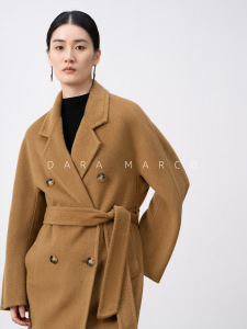 「纯骆驼绒」3W+M家JI软JI轻长款手工双面羊绒大衣外套女秋101801