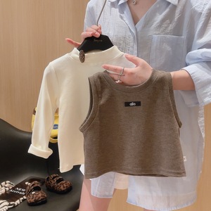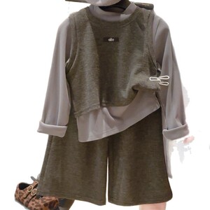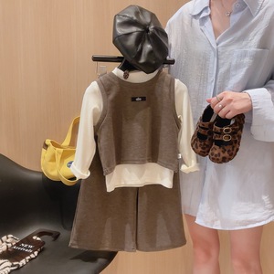 早秋女童套装洋气纯色韩版秋季新款儿童背心马甲阔腿裤三件套童装