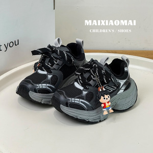 迈小迈2025冬季新款儿童潮流擦色字母运动鞋二棉厚底男女童老爹鞋