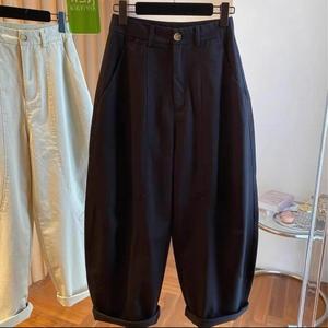 秋新款高腰百搭韩国东大门阔腿休闲弯刀裤宽松镰刀裤长裤黑色