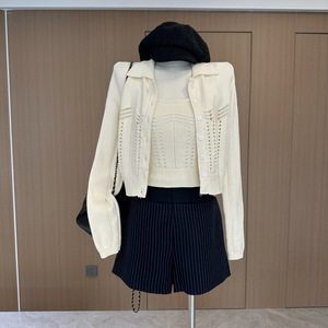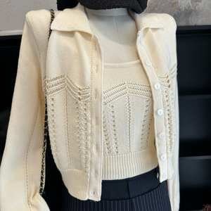 塞纳镂空粗织针织开衫2025秋季新款两件套气质吊带短款上衣