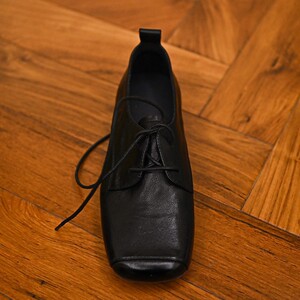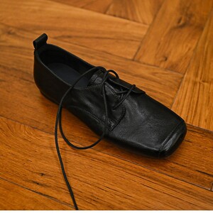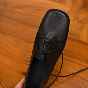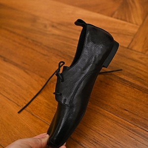 【现货】8845软皮复古方头单鞋女2025春秋新款法式系带低跟通