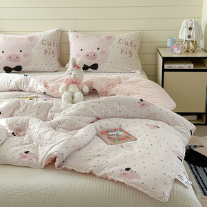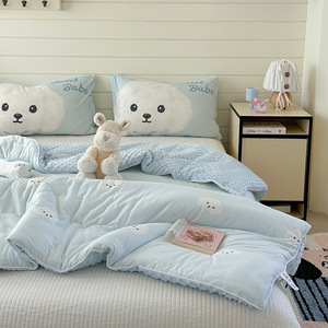 可爱卡通针织棉豆豆被卡通春秋被冬被软绵云朵被子被芯可机洗批发