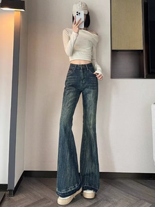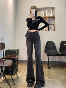 美式复古高腰微喇牛仔裤女春秋新款高腰显瘦垂感长裤宽松马蹄裤子