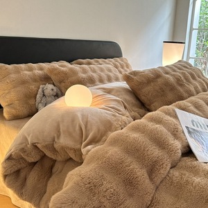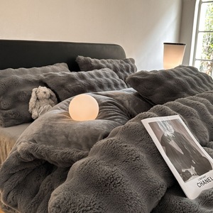 冬季兔毛绒四件套三件套双面加厚牛奶绒被套保暖珊瑚绒床单品被套