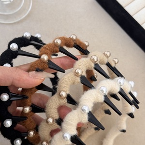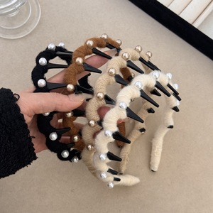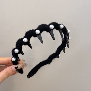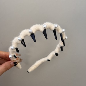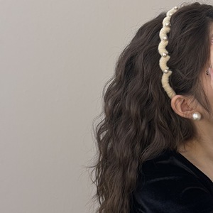 韩版毛线珍珠波浪发箍女带齿防滑高颅顶头箍蓬松纹理感压发卡头饰