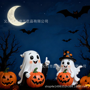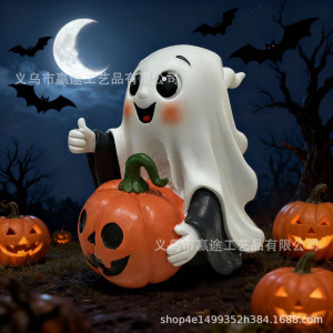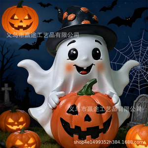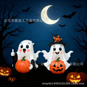跨境新款万圣节幽灵南瓜派对摆件高级感小众树脂工艺品鬼节装饰