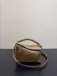 真皮几何包新款真皮手提包单肩斜挎包大容量条纹拼接软皮通勤女包