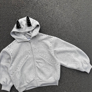 美式重磅杜宾犬柳钉耳朵开衫卫衣连帽外套潮牌高级感情侣夹克男款