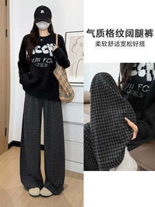 黑色格子阔腿裤女秋季2025新款高腰宽松慵懒松弛感休闲毛呢直筒裤