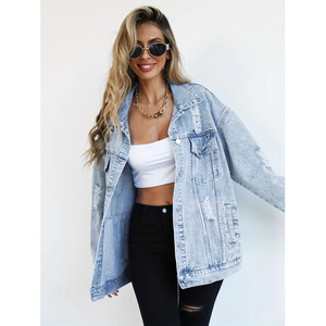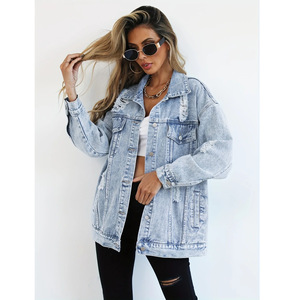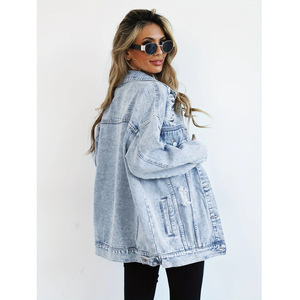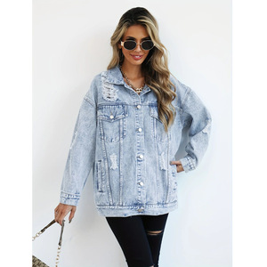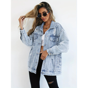 跨境标码牛仔外套破洞2025街头上衣新款风格潮流牛仔时尚女独立站