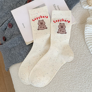 可爱袜子女秋冬中筒袜 卡通动物点子纱女士长袜 诸暨无骨女袜批发