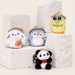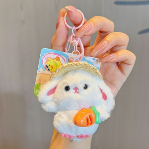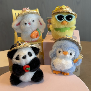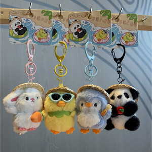 原创mini草帽小动物毛绒钥匙扣挂件可爱书包小挂饰学生礼品批发