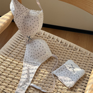 法式甜美小清新碎花内衣无钢圈小胸聚拢收副乳舒适透气文胸
