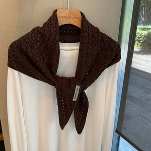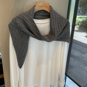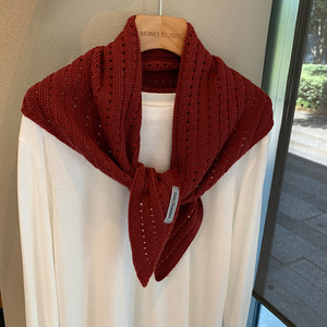 三角巾女春秋冬季外搭装饰竖条镂空小披肩气质优雅围脖坎肩小领巾