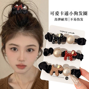 高级感小狗发绳女缎面小肠发圈不伤发扎头皮筋2025新款丸子头头绳