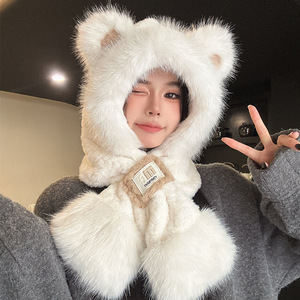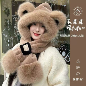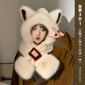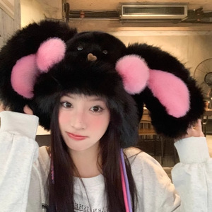 冬天保暖帽子秋冬女可爱毛绒护耳帽女款大头围雷锋帽毛茸茸高级感