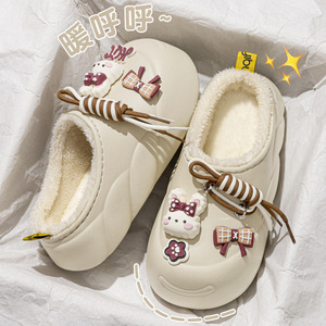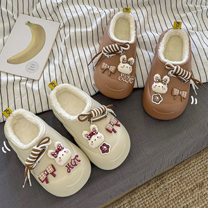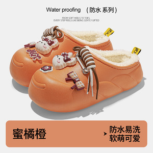 冬季踩屎感棉拖鞋软底卡通防水包头厚底加绒保暖女士居家月子鞋