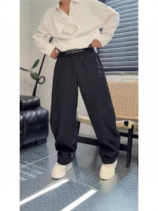 美式潮牌拼接撞色字母运动弯刀裤男秋季时尚百搭宽松阔腿休闲长裤