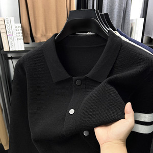 跨境秋春季新款翻领长袖开衫毛衣男士针织衫简约休闲百搭外套男装