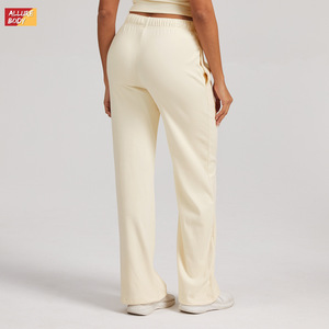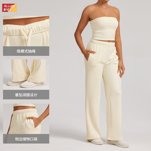 欧美跨境德绒高腰宽松运动卫裤抽绳阔腿直筒休闲长裤百搭运动裤女