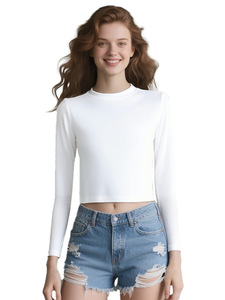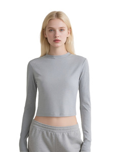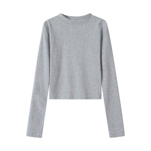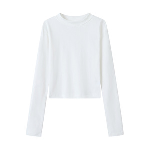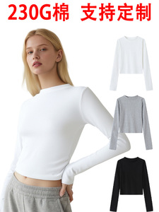 新款230G短款收腰露脐装长袖T恤正肩洋气潮款修身上衣印花跨境