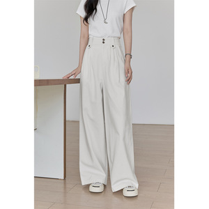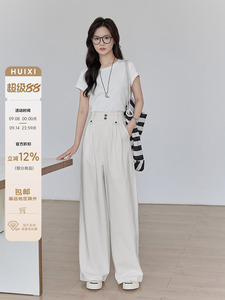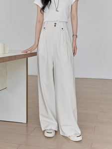 HUIXI绘系「白调清风」白色休闲裤女薄款夏季垂感直筒阔腿长裤子