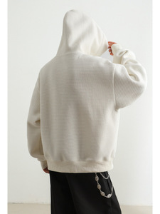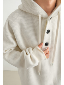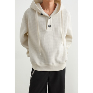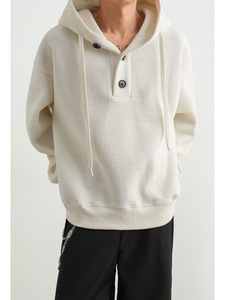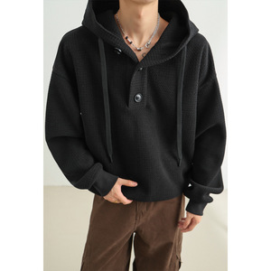 纽扣连帽卫衣男高级感美式重磅硬挺套头外套秋季大码宽松运动上衣