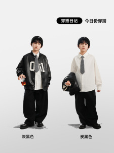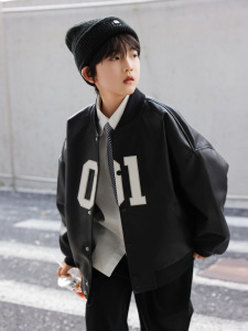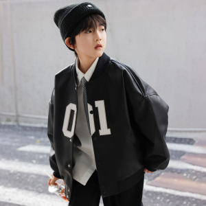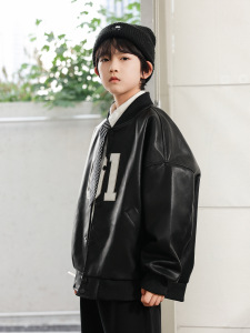 熊猫圆圆2025秋季新品中大童男童皮衣 儿童秋装外套防水夹克代发