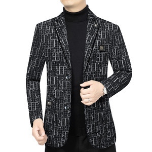 2025年秋季新款男士印花商务休闲西装外套中青年男式西服便服单西