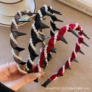 复古丝绒波浪珍珠发箍女秋冬洗脸防滑发捆时尚洋气高颅顶头箍发饰
