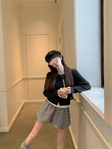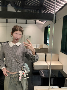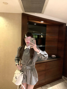 jijilulu积极璐 甜心欧尼 格子娃娃领衬衫公主气质经典时髦感短裤