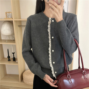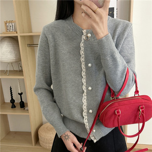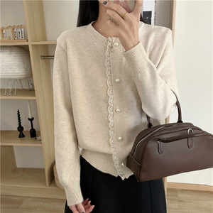 蕾丝花边毛衣开衫女春秋季新款气质温柔风洋气轻熟风长袖针织衫外