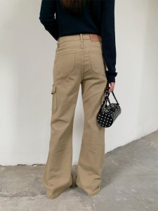 誉一新款2025秋季美式工装微喇牛仔裤小众个性卡其色长裤女c93370