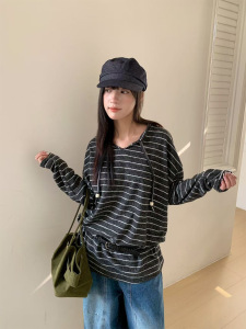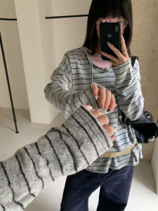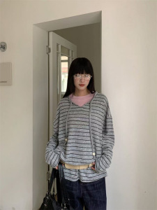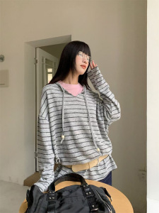 誉一新款2025秋季毛绒感条纹连帽卫衣女宽松磨毛长袖上衣女c0088
