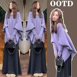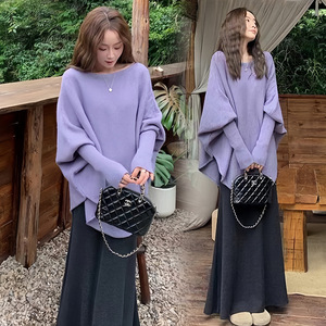 孕妇装套装2025秋季韩版高级感蝙蝠袖针织上衣半身裙哺乳两件套