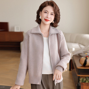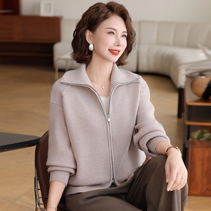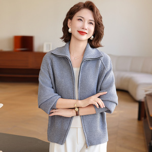 洋气妈妈秋季新款针织拉链上衣气质夹克中年女士春秋时尚休闲外套