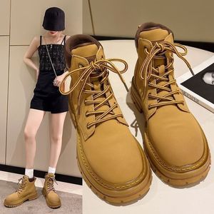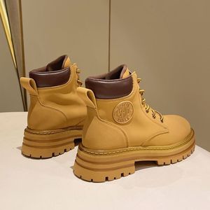 跨境专供内增高马丁靴女2025新款大黄靴女款户外厚底百搭短靴鞋