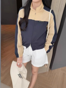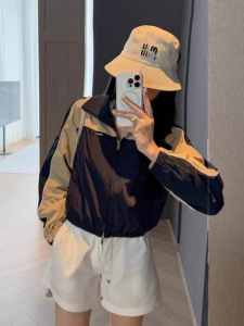 高品质MIU家撞色设计夹克风衣立领短版长袖夹克开衫外套女可代发