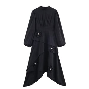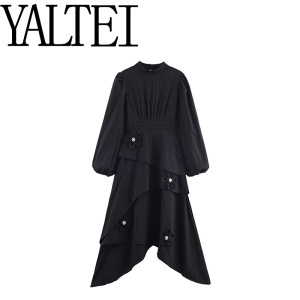 YALTEI跨境速卖通ins欧美外贸 女装 法式立体装饰不规则连衣裙