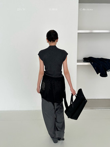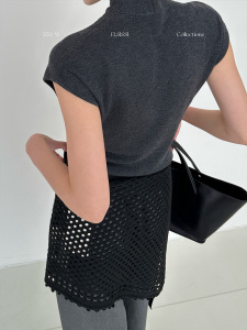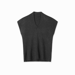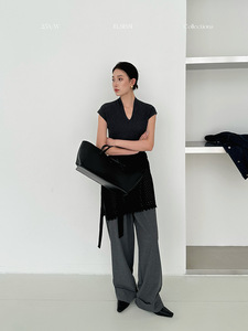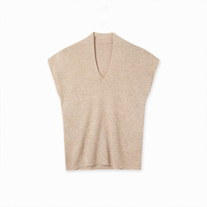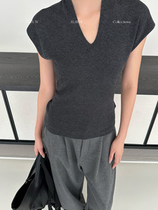 ELSISSI纯色v领坑条无袖毛织针织衫女2025秋季新款女装打底上衣