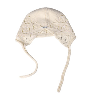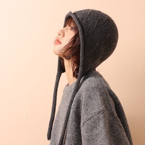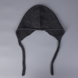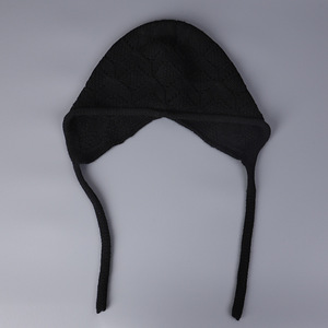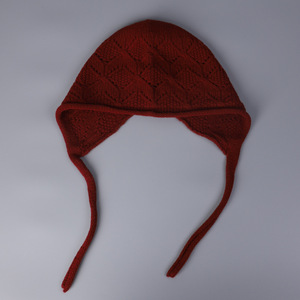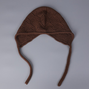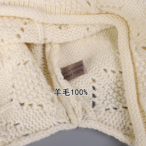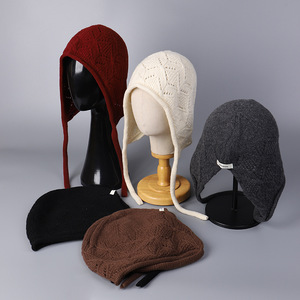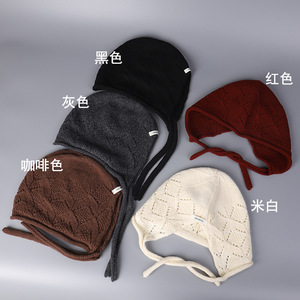 全羊毛北欧风镂空针织冷帽秋冬菱格巴拉克拉法帽毛线帽带绳包头帽