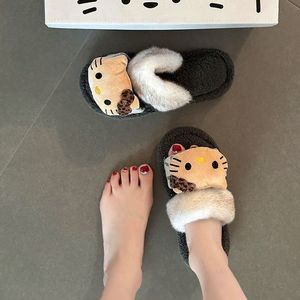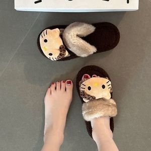 时尚设计感可爱卡通kt猫毛毛拖鞋女外穿2025秋冬季新款棉拖鞋棉鞋