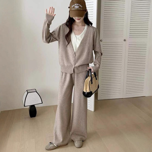 2025秋冬新款学院风v领假两件针织套装女毛衣+阔腿裤两件套休闲