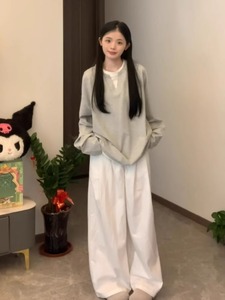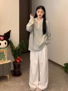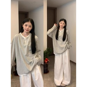 华夫格假两件长袖t恤女韩系秋季2025新款松弛感慵懒风设计感上衣