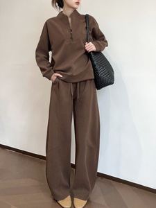 韩系秋冬新款半拉链套装女2025拼接卫衣阔腿裤香蕉长裤两件套