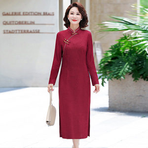 2025年女装婚宴长裙子女喜庆婆婆装中长款改良旗袍妈妈装连衣裙秋