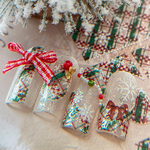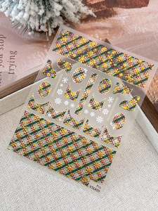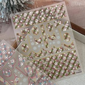 YITU蚁图浮雕烫金圣诞雪花格纹美甲贴纸轻奢复古风装饰贴纸YT6453