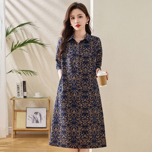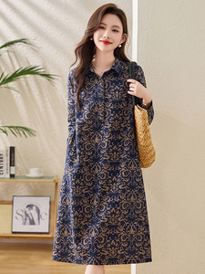 复古印花衬衫裙女2025春秋新款文艺风POLO领百搭显瘦长袖连衣裙