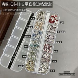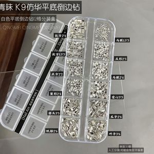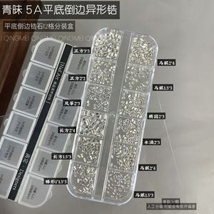 青昧美甲混装12格平底异形钻珍珠迷你锆石爆闪冰透马眼钻指甲配饰